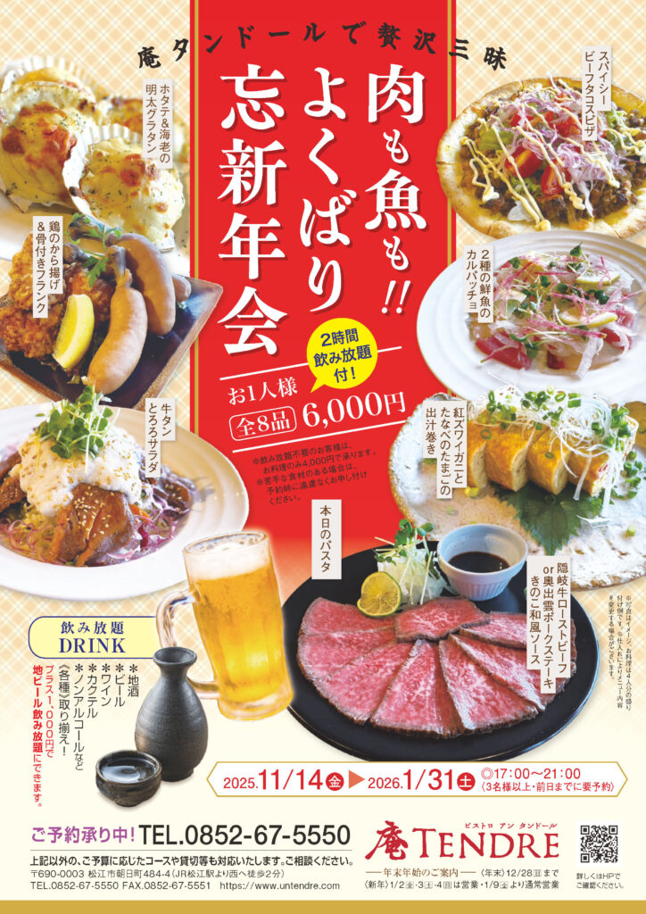 島根県松江市、ビストロ庵タンドール・ランチ、ディナー、パスタ、ピザ、パーティー